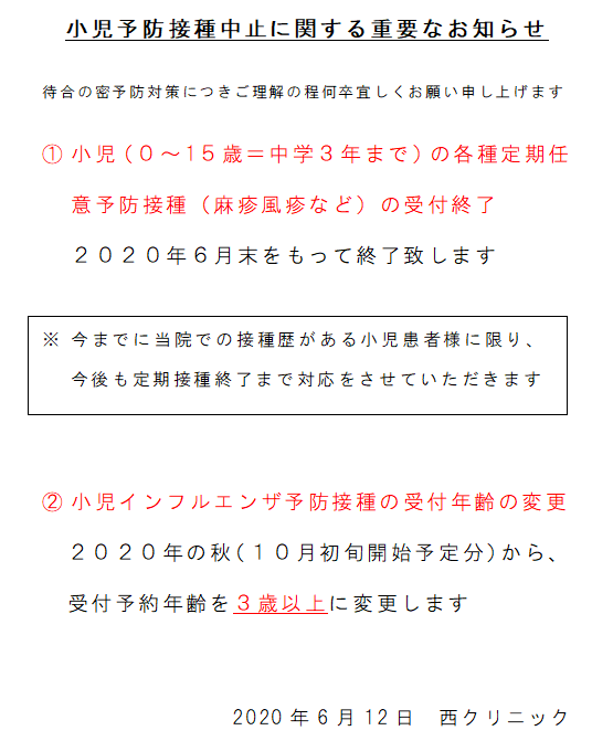 小児予防接種中止に関する重要なお知らせ
